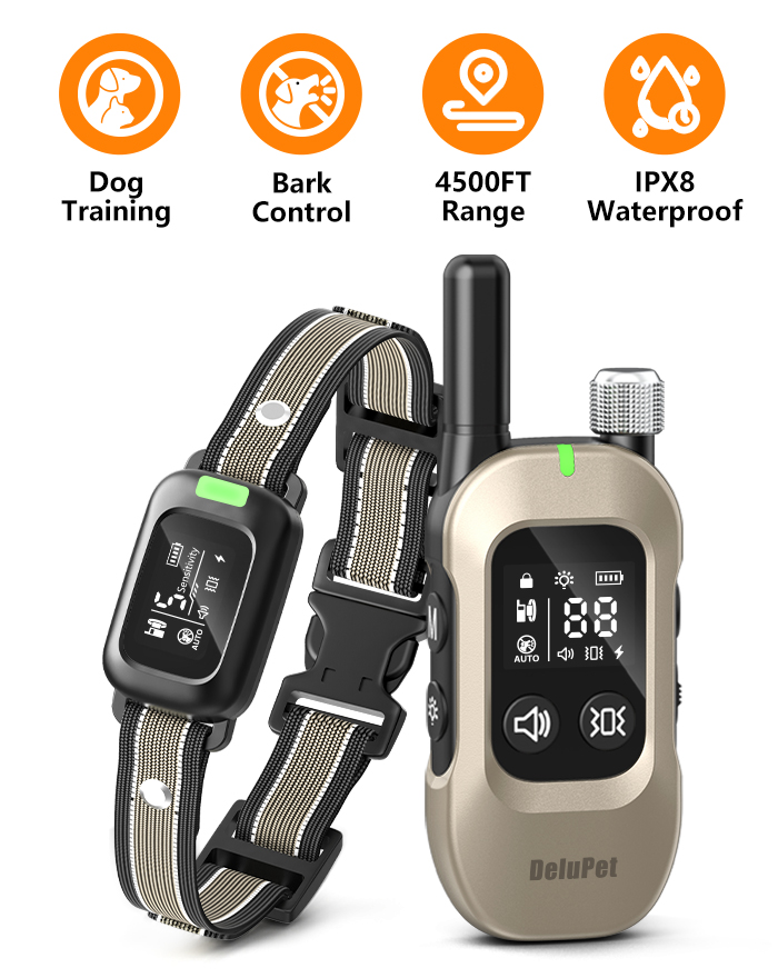 4500FT REMOTE RANGE - This Delupet bark shock collar reliable control up to 4200FT, perfect for backyards, parks, or open fields, say goodbye to yelling and chasing and train your dog with ease.The anti bark collars for dogs built-in LED flashlight for sos & steady mode, you can easily train or locate your dog during night walks or early mornings, ensuring dog's safe
