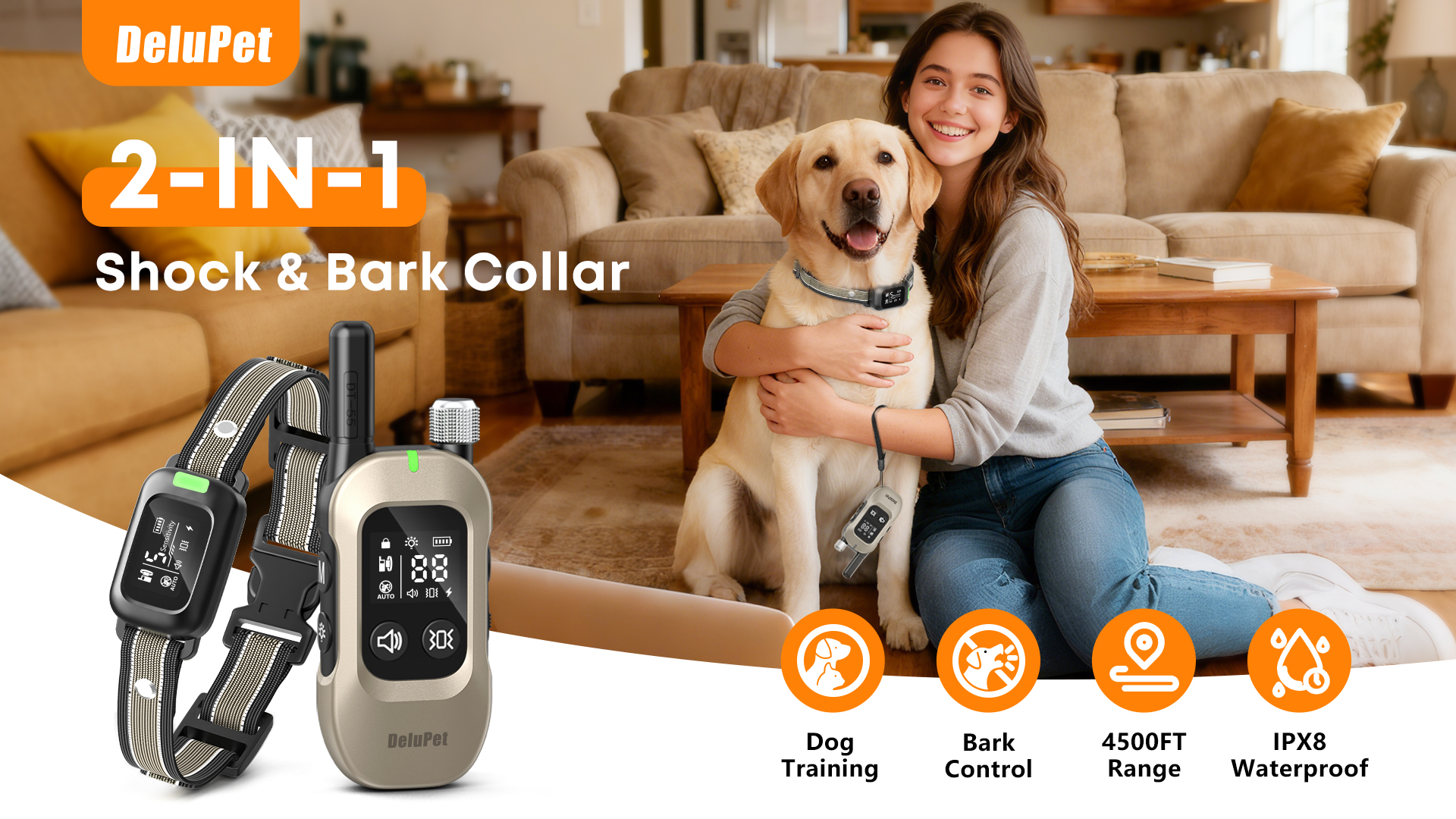 3 SMART MODES & TRAINING LEVELS - Delupet electric dog collar train your puppy switch between training, bark control, or 2-in-1 mode, fine-tune correction with beep(F1–F3), vibration(1–6), or safe shock(0–99) levels for right intensity for your dog’s size and behavior. Gentle, safe, and effective every time